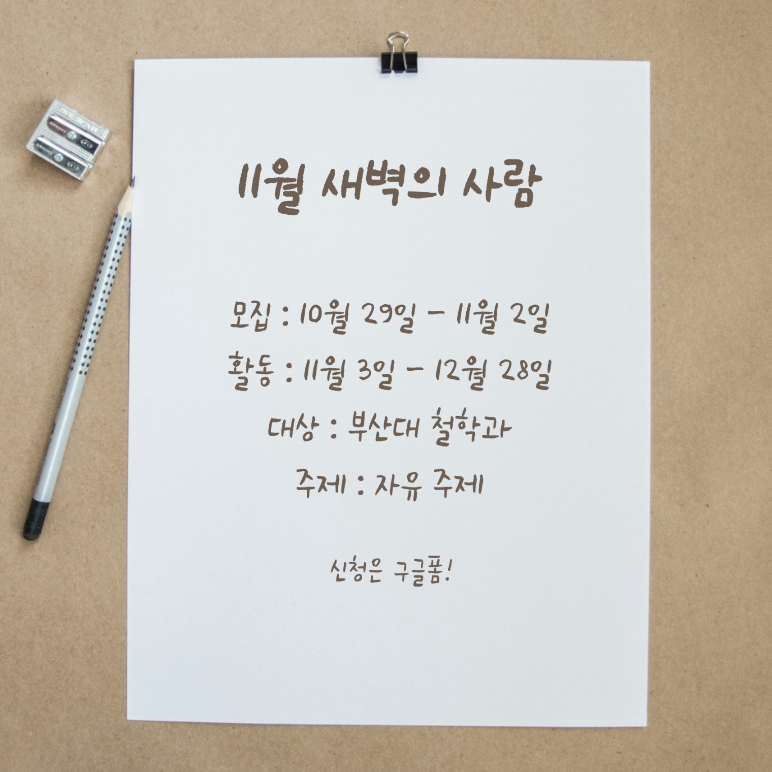 『11월 새벽의 사람 모집』안내